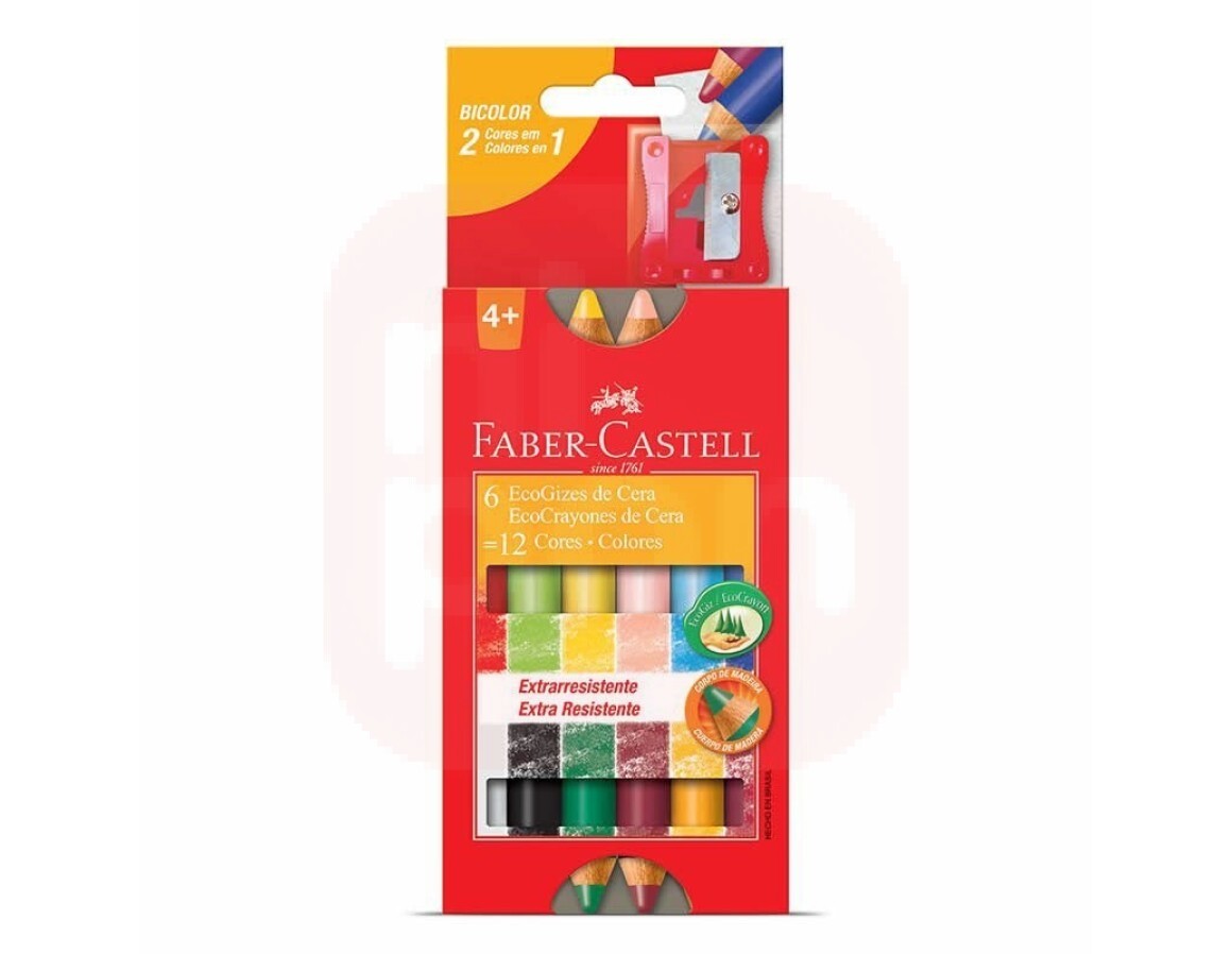 Giz de Cera Amadeirado 12 Cores Bicolor - Faber-Castell