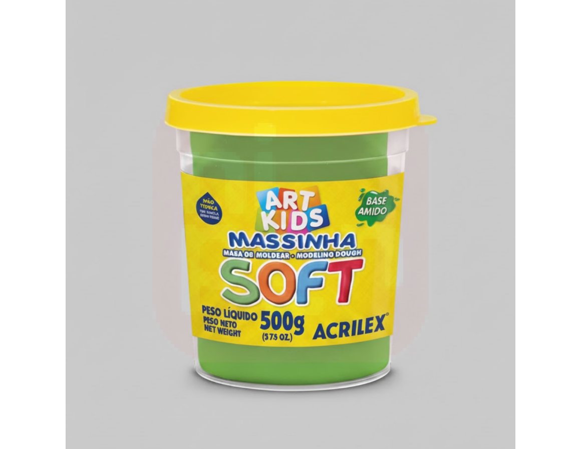 A Massa de Modelar Soft 150g Verde - Acrilex é perfeita para soltar a criatividade de crianças e adultos! Sua textura macia e fácil de moldar proporciona uma experiência sensorial agradável e divertida. Desenvolvida com alta qualidade Acrilex, não gruda nas mãos, não resseca facilmente e oferece cores vivas e intensas, ideais para atividades escolares, artesanais e recreativas. Estimula a coordenação motora, a criatividade e o desenvolvimento cognitivo, tornando o aprendizado ainda mais lúdico.