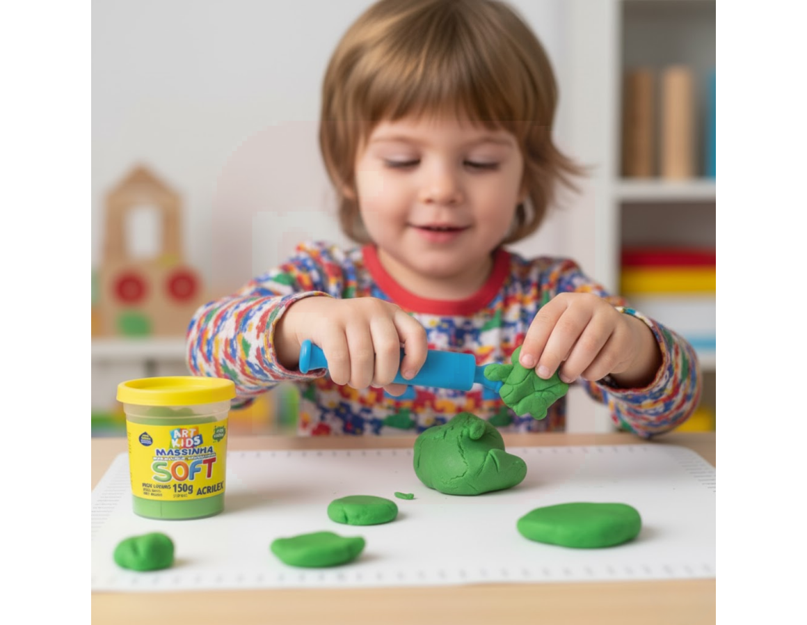 Perfeita para escolas, ateliês e uso doméstico, a Massa de Modelar Soft é atóxica e segura, garantindo diversão com tranquilidade.