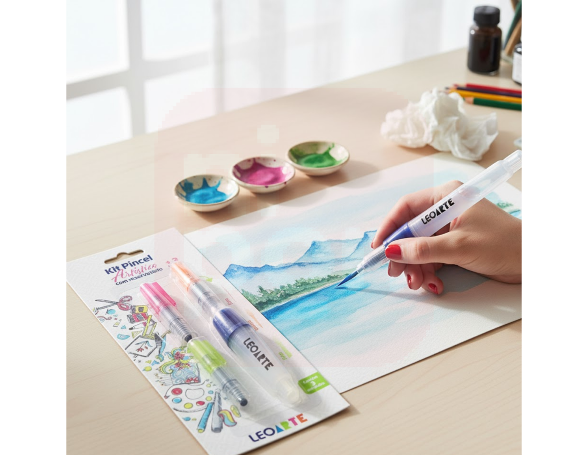 Kit Pincel Artístico com Reservatório - Leo&Leo