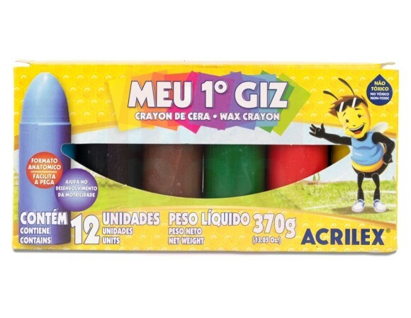 Giz de Cera 12 Cores Jumbo Meu 1º Giz - Acrilex
