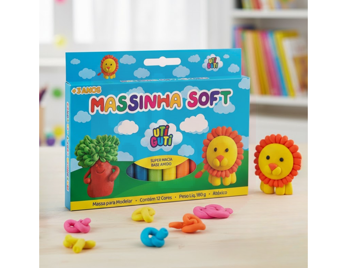 A Massa de Modelar Uti Guti 12 Cores 180g é perfeita para estimular a criatividade, coordenação motora e imaginação das crianças!