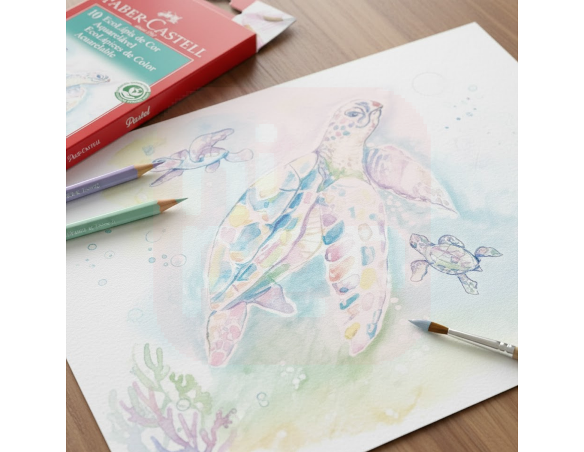 O Lápis de Cor 10 Cores Pastel Aquarelável – Faber-Castell é ideal para quem deseja unir a suavidade dos tons pastel com a versatilidade da aquarela. Com ele, é possível colorir de forma tradicional ou adicionar um pincel com água para criar efeitos artísticos incríveis e delicados.
