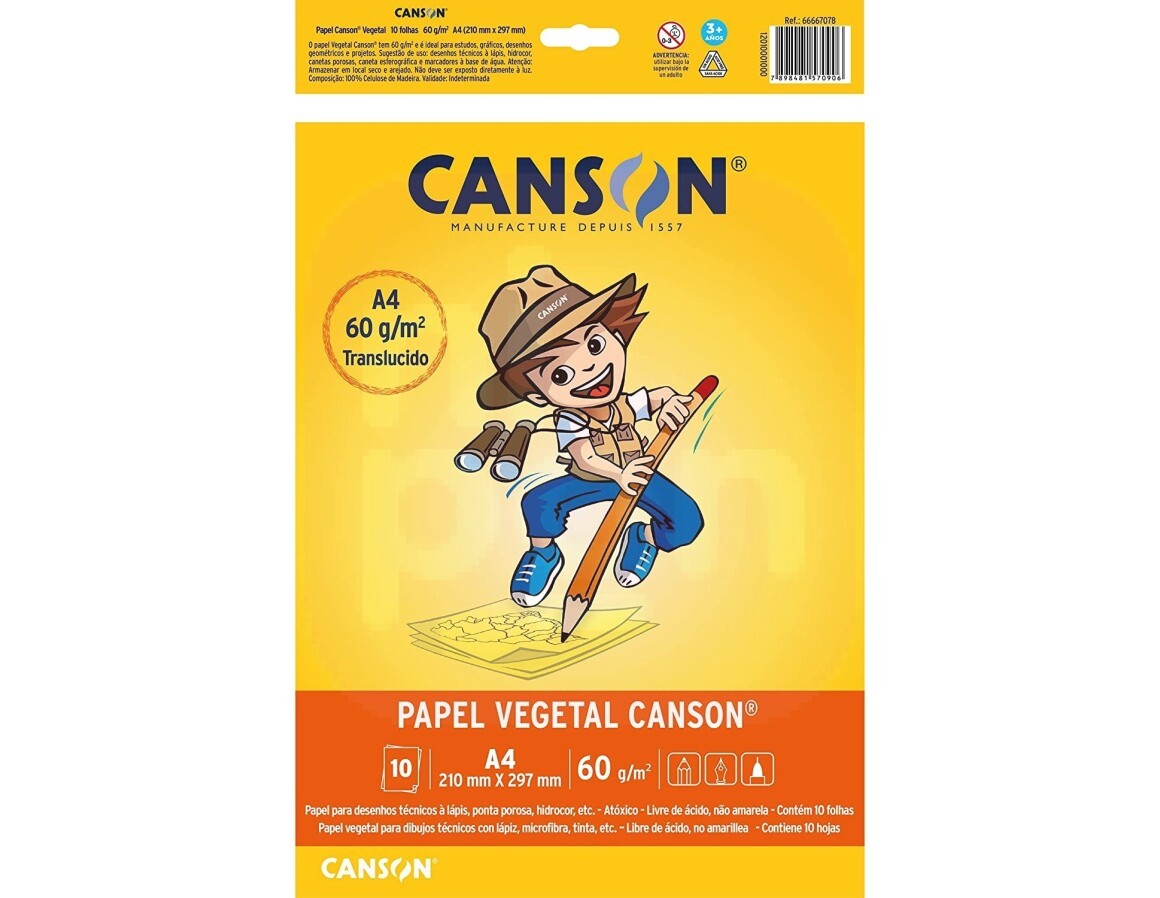 Papel Vegetal Escolar 60g A4 com 10 Folhas - Canson
