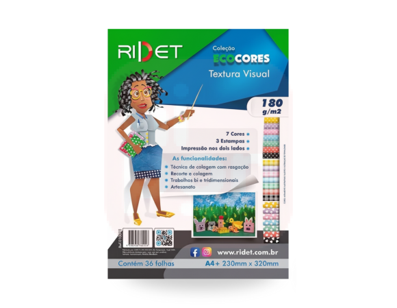 O Bloco Ecocores Textura Visual 180g da Ridet é a escolha ideal para quem busca criatividade com acabamento sofisticado. Composto por 36 folhas coloridas com textura visual diferenciada, oferece um toque especial aos seus projetos, sejam eles escolares, artísticos ou artesanais.
