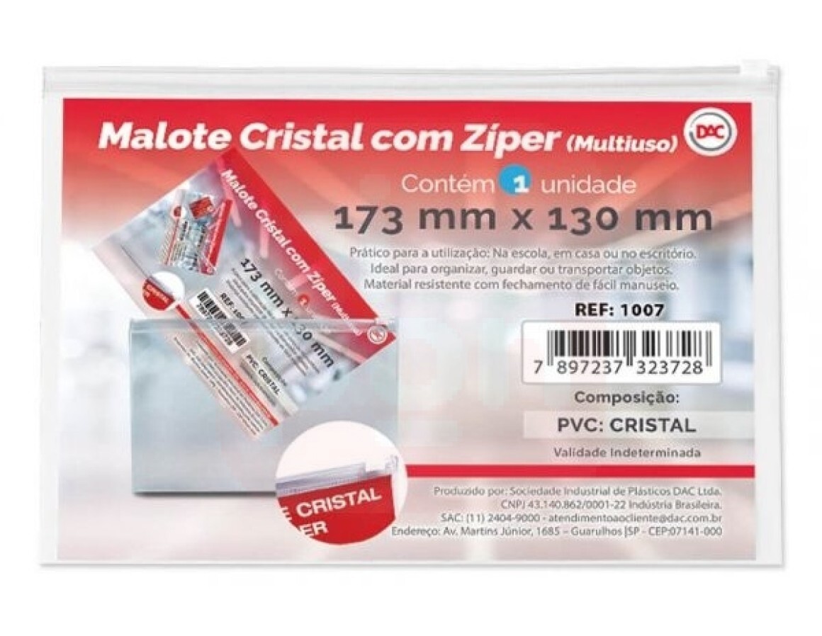 Pasta Malote Cristal Com Zíper 173 X 130mm - Dac