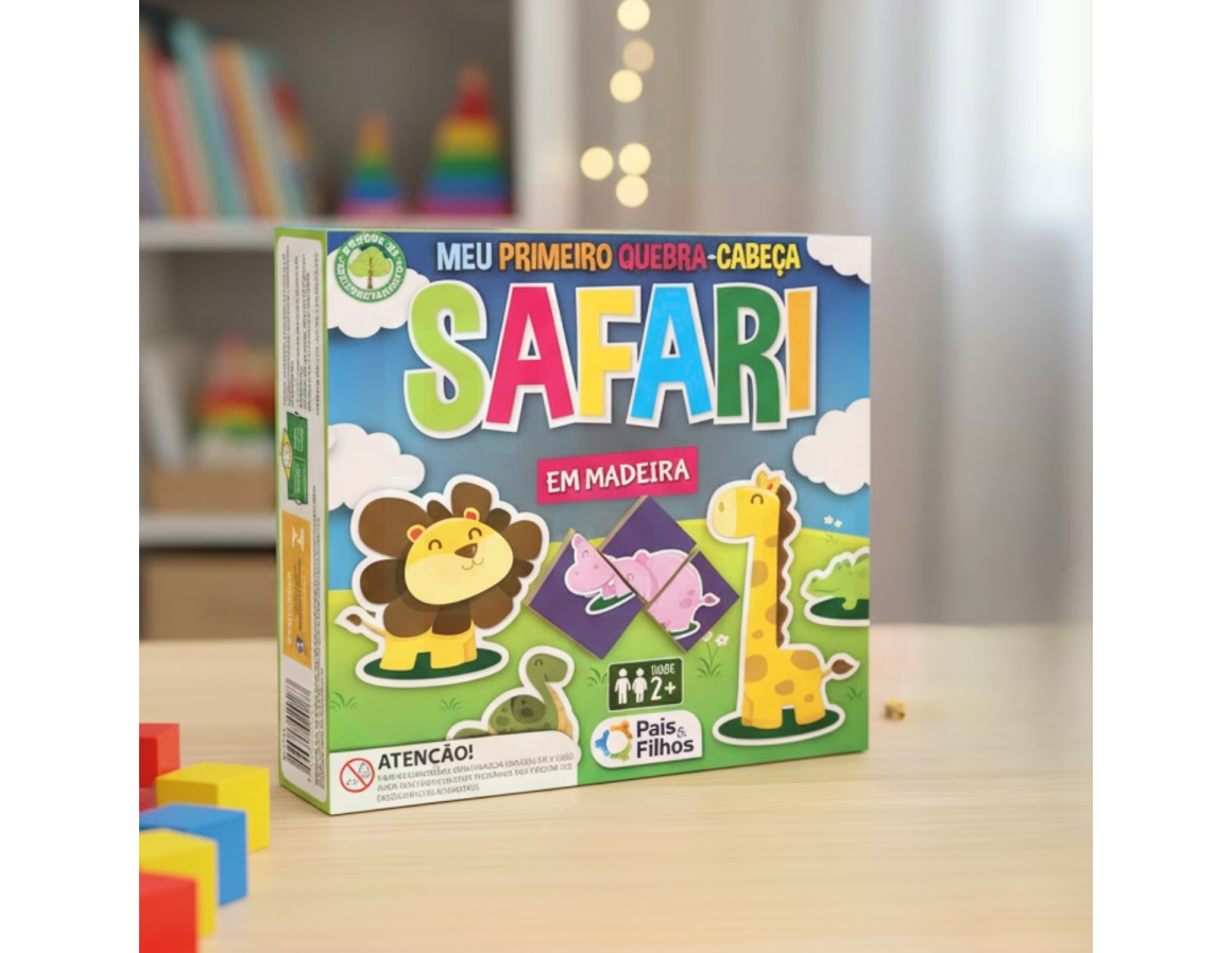 Estimule a coordenação motora, percepção visual e raciocínio das crianças com o Quebra-Cabeça Pedagógico de Madeira – Safari! Fabricado em madeira resistente e com peças grandes e seguras, ele apresenta animais da selva de forma divertida e educativa. Ideal para uso escolar, terapias, atividades lúdicas e momentos em família.