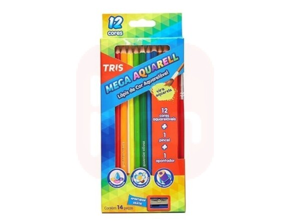 | Informação adicional | Cores vibrantes; Traço super macio; Corpo triangular; Alta solubilidade; Ideal para desenhos artísticos. Acompanha pincel e apontador. |