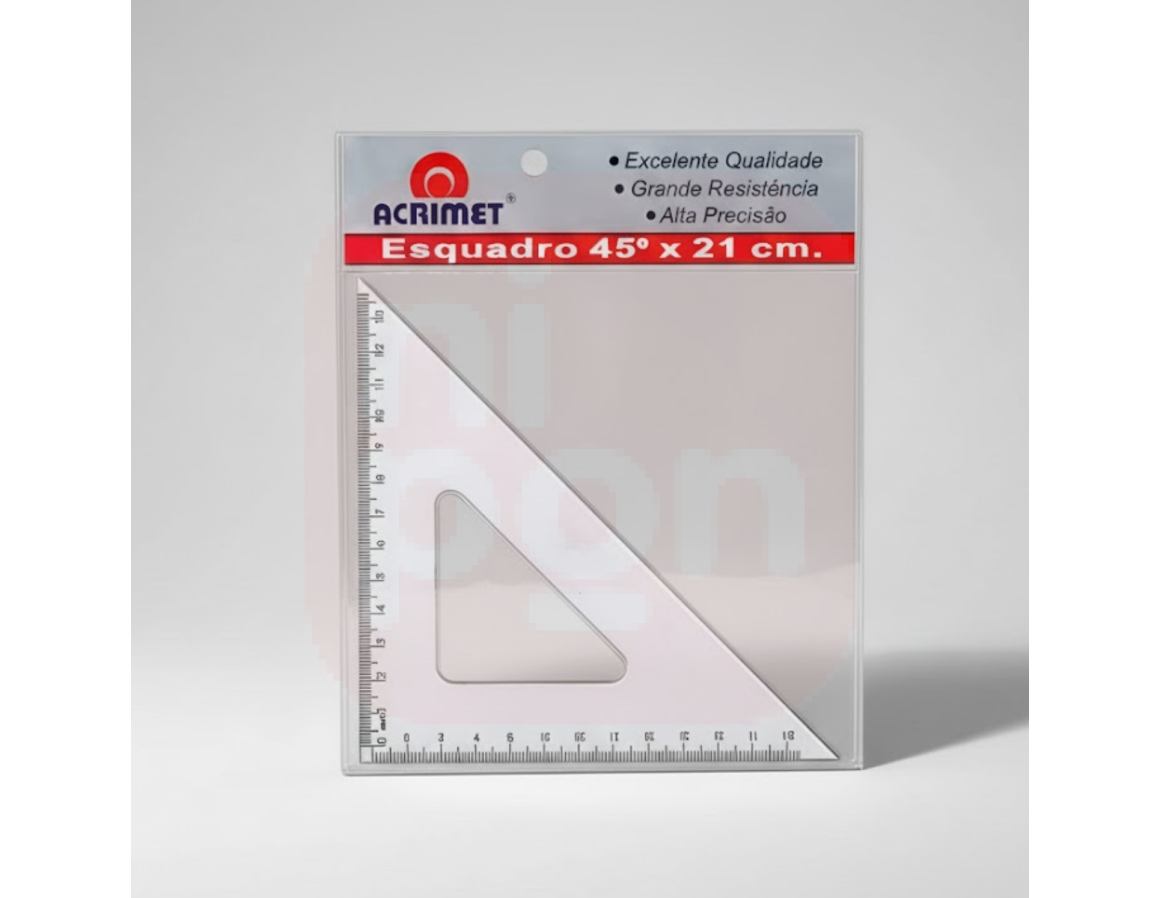 O Esquadro 45° x 21cm – Acrimet é um instrumento essencial para quem busca precisão e qualidade em trabalhos de desenho técnico, geométrico e escolar. Produzido em acrílico transparente de alta resistência, permite visualização clara das linhas e ângulos, garantindo traços exatos e resultados profissionais. Seu formato ergonômico e medidas precisas tornam o uso prático e confortável, ideal para estudantes, arquitetos, engenheiros e artistas. Com a tradição e confiabilidade da Acrimet, é o acessório perfeito para acompanhar em toda atividade de desenho.