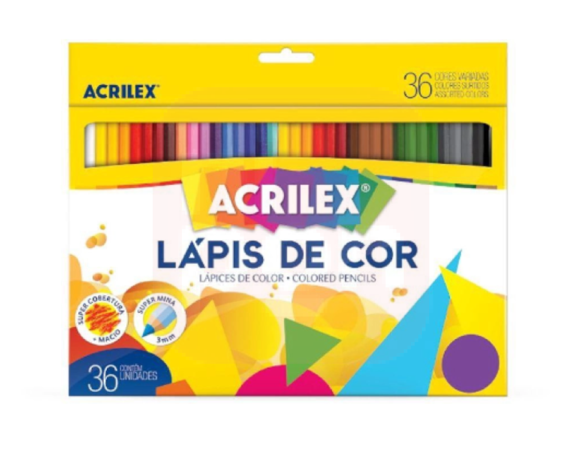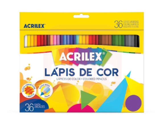 Quer ter uma experiência artística impecável? Com o Lápis de Cor da Acrilex você consegue! A caixa vem com 36 cores com super cobertura, pontas macias e uma super mina de 3mm que vai tornar suas artes lindas. O lápis de cor da Acrilex tem um formato hexagonal que possibilita o encaixe perfeito sem escorregar.
