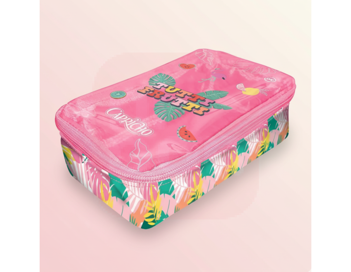 Com um design exclusivo da linha Capricho Tropical, ele traz cores vibrantes e estampa moderna, cheia de personalidade e estilo. A estrutura box facilita a visualização e o acesso aos itens, enquanto o fechamento em zíper reforçado garante segurança no transporte. Tudo isso em um material resistente e de qualidade, pensado para acompanhar sua rotina na escola, faculdade, cursos ou até mesmo no home office.
