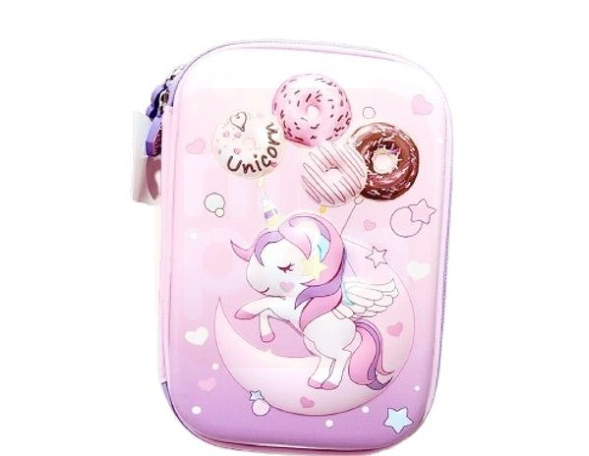 Ideal para guardar lápis, canetas, borrachas e outros materiais escolares, este estojo da marca VMP é produzido em EVA resistente, oferecendo durabilidade e fácil limpeza. Seu design encantador traz uma estampa em 3D de unicórnio, cheia de cores e magia, perfeita para quem ama um toque de fantasia no dia a dia. Com divisórias internas, mantém todos os itens bem organizados, sendo ideal para escola, escritório ou uso pessoal.