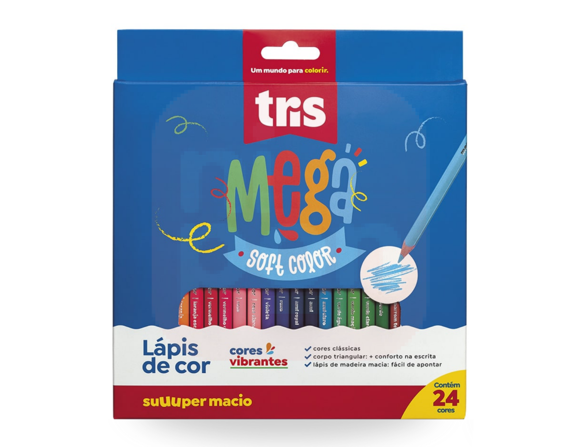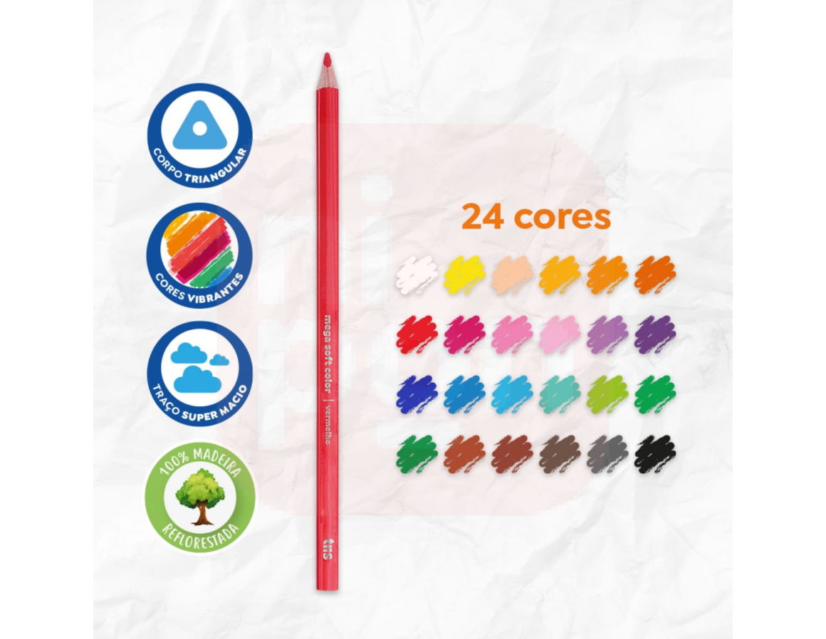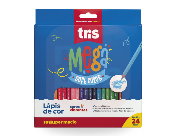 Kit Lápis de Cor Mega Soft Color 24 Cores + Apontador - Tris