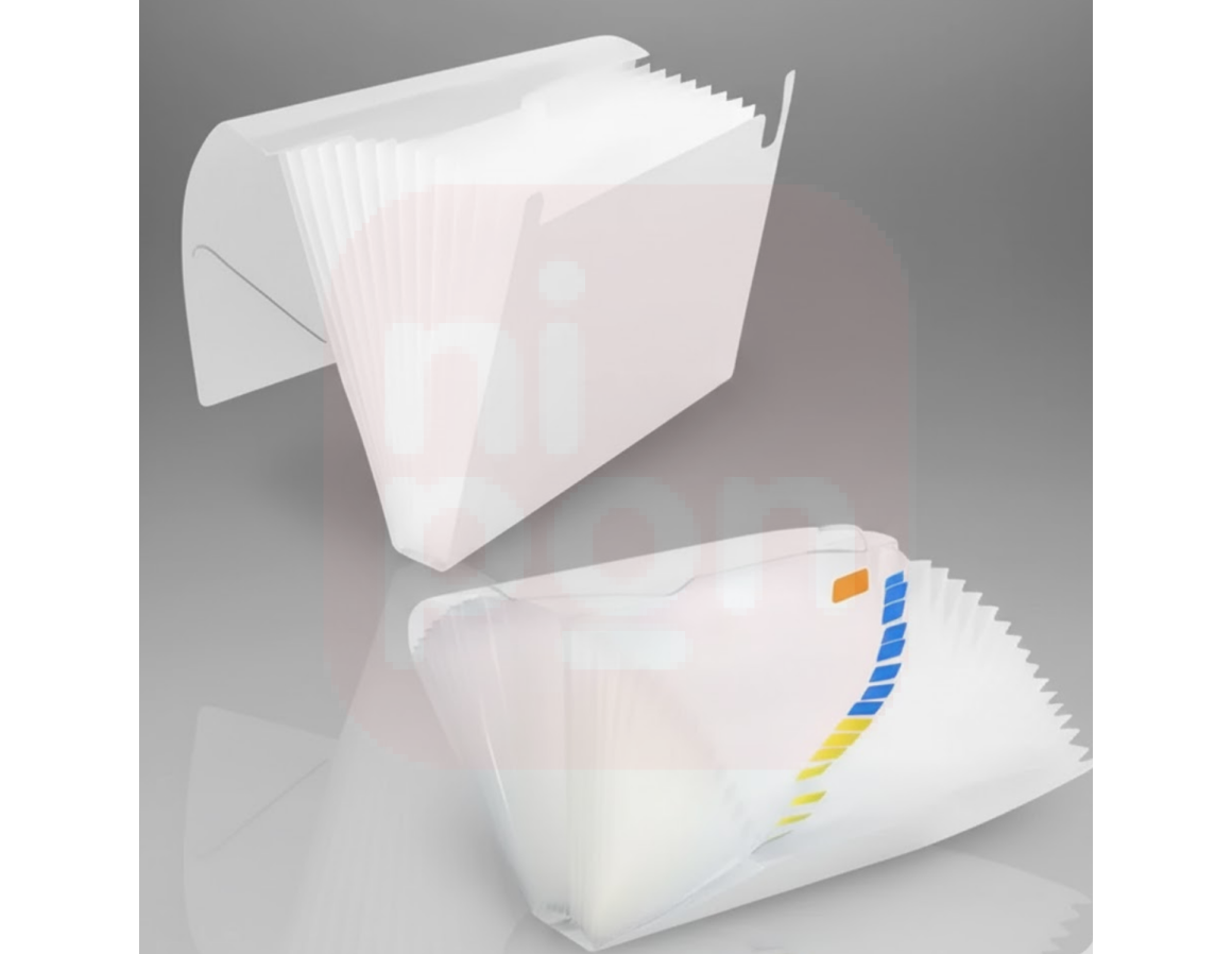 Com 12 divisórias expansíveis, permite classificar e armazenar documentos A4 de forma prática e segura. Seu design cristal proporciona visualização rápida do conteúdo, enquanto o fechamento com elástico garante segurança no transporte.