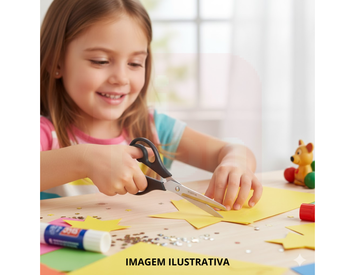Com lâminas de aço inox e ponta arredondada, é perfeita para crianças, estudantes e trabalhos manuais que exigem cuidado no manuseio.