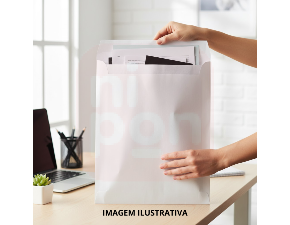 O Envelope Saco Branco GG 370x450 mm é ideal para envio, armazenamento e organização de documentos, catálogos, revistas e materiais de escritório.