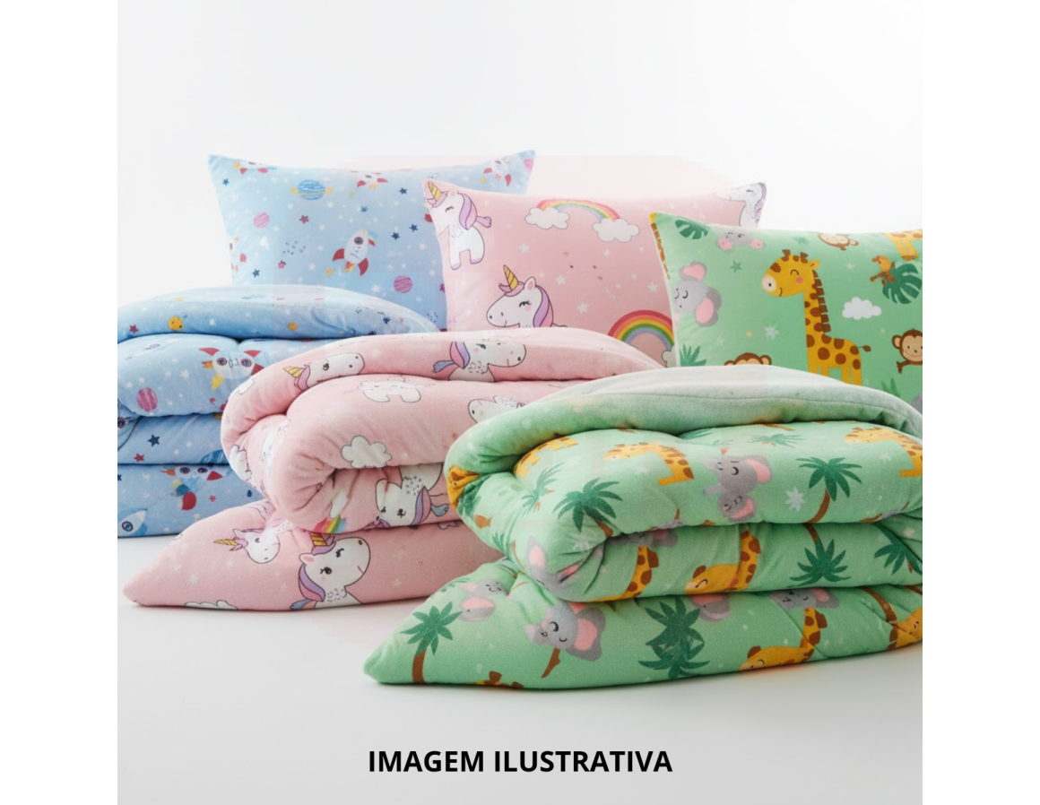 Nosso kit infantil com edredom e travesseiro é ideal para o uso escolar — perfeito para a “hora do soninho” no colégio.