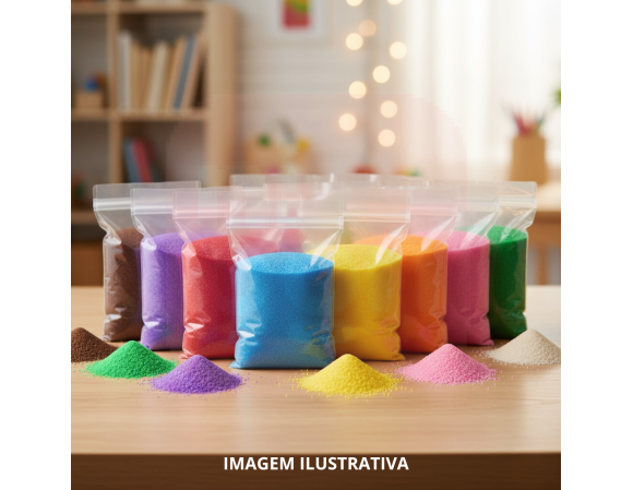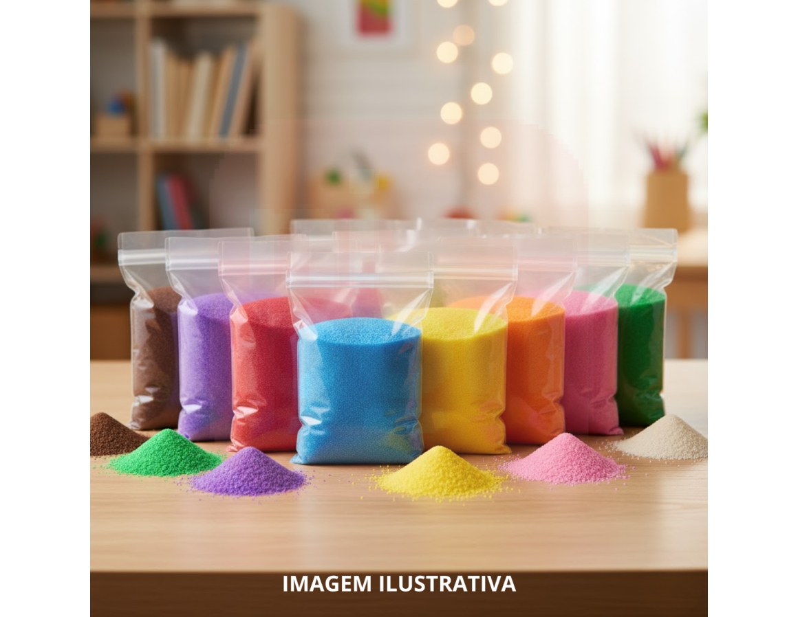 Feita com grãos finos e uniformes, a areia possui textura suave e excelente fixação em trabalhos manuais. Ideal para estimular a criatividade e o tato das crianças, também é muito utilizada em projetos de arte e decoração.