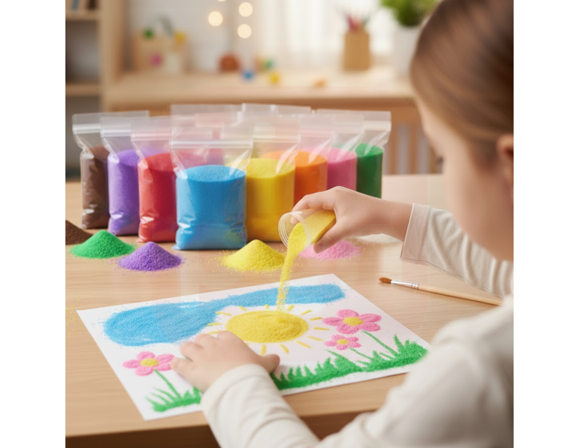 A Areia Colorida 1kg é perfeita para atividades criativas, escolares, decorativas e sensoriais!