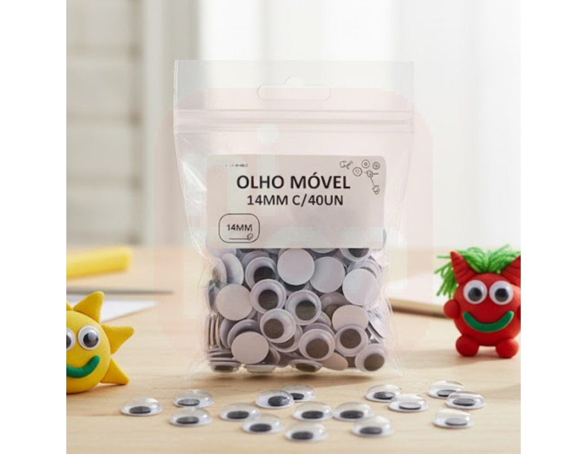 Dê vida e expressão às suas criações com o Olho Móvel 14mm com 40 Unidades!