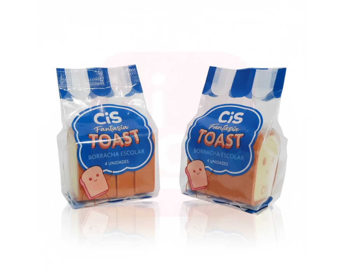 A Borracha Toast CIS é perfeita para quem ama papelaria divertida e funcional. Inspirada em torradinhas super fofas, o kit com 4 unidades traz cores vibrantes e excelente desempenho na hora de apagar. Feita com material macio, remove o grafite sem danificar o papel, ideal para uso escolar, diário ou escritório.