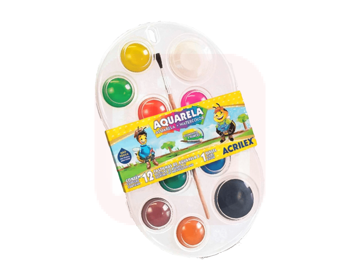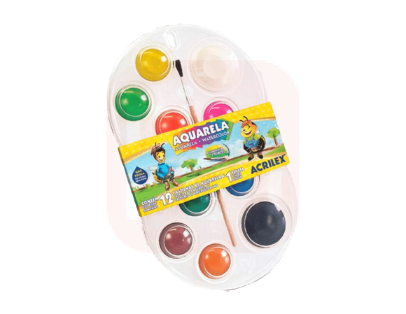 A Aquarela 12 Cores da Acrilex é ideal para introduzir crianças e estudantes ao mundo da pintura com aquarela de forma divertida, acessível e criativa. Com 12 cores vibrantes e solúveis em água, ela proporciona excelente espalhabilidade e mistura de tons, estimulando a imaginação e a expressão artística. Acompanha pincel e vem em estojo plástico leve e prático, perfeito para levar à escola ou usar em casa. É um produto atóxico, seguro e desenvolvido especialmente para uso escolar e recreativo.