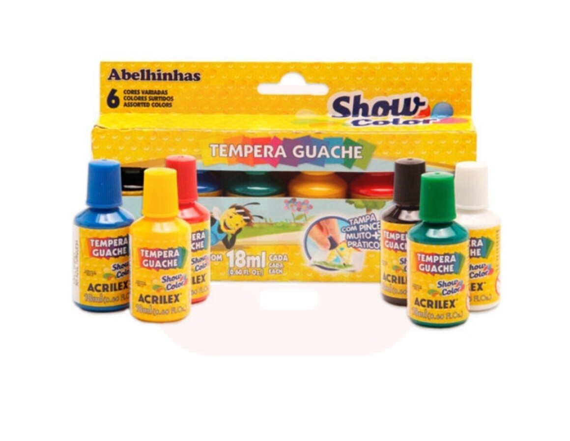 Tinta Guache 6 Cores + Pincel - Acrilex
